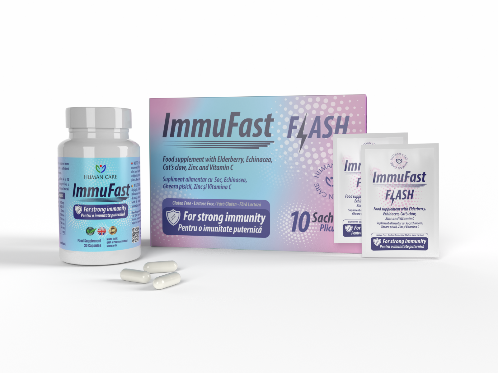 This sachet-based format allows for quick use, portability, and fast absorption—ideal for active, modern consumers. ImmuFast Flash is not only an innovation but also a logical continuation of the ImmuFast brand legacy, strengthening the product family with a rapid-action formula that complements the daily-use capsule format.