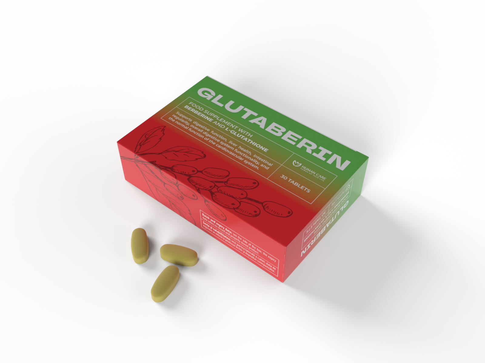 Bulking agent: dicalcium phosphate E341; Berberis bark from branches (Berberis aristate DC.) dry extract titrated at 98% in berberine, L-Glutathione, bulking agent: cross-linked sodium carboxy methyl cellulose E468; anti-caking agents: silicon dioxide E551, fatty acids magnesium salts E470b.